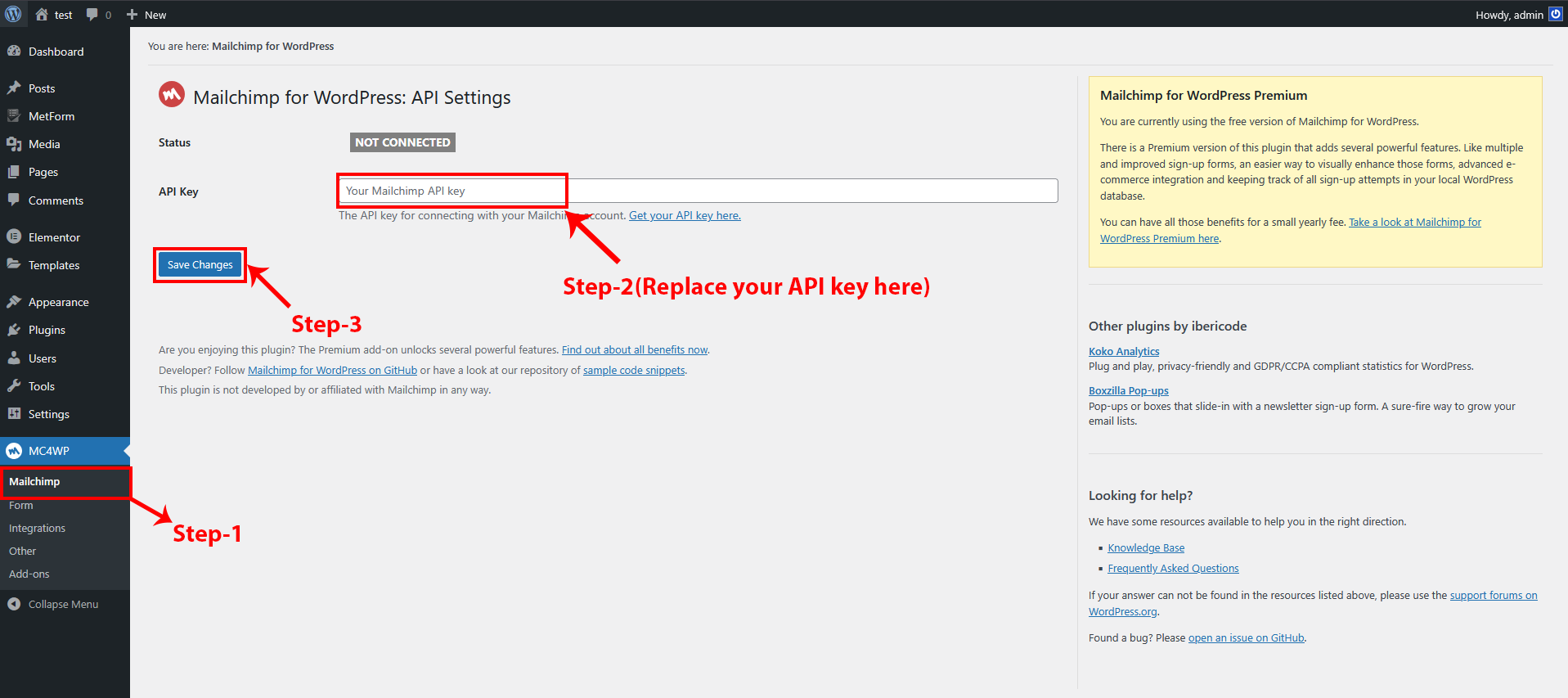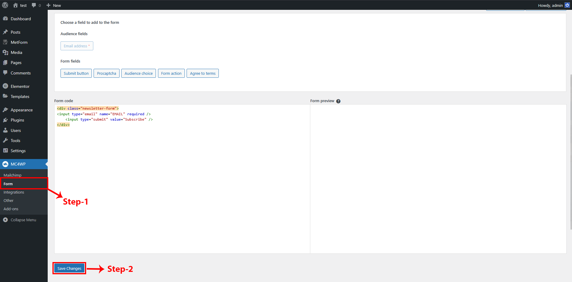 In Mailchimp, the user should first enter their API key and save the changes. The form is always available, but if the user wants to customize the form’s code or appearance, they can make the desired changes and save them to update the form.