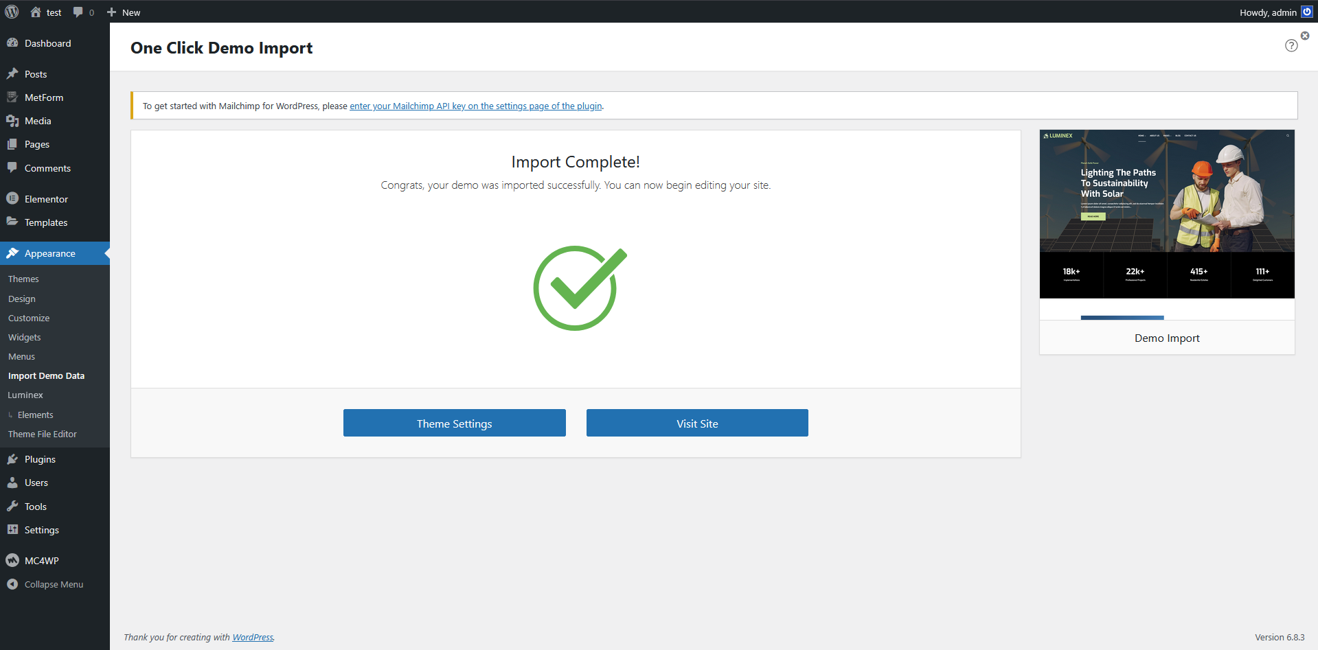 Import Complete! Congrats, your demo was imported successfully.