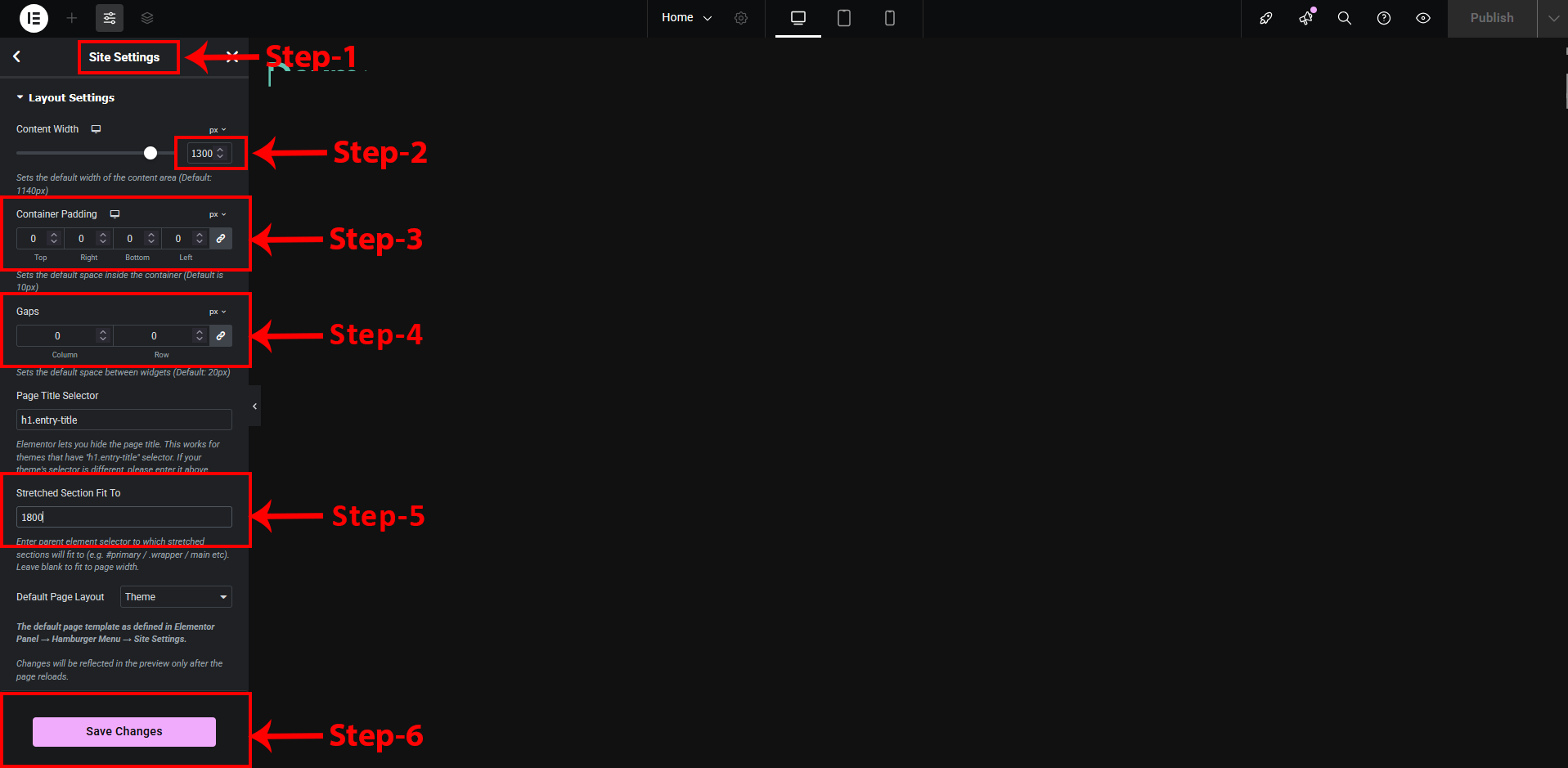Here you can customize the overall layout of your website. Adjust the container width, padding, and gaps to achieve the exact look you want.