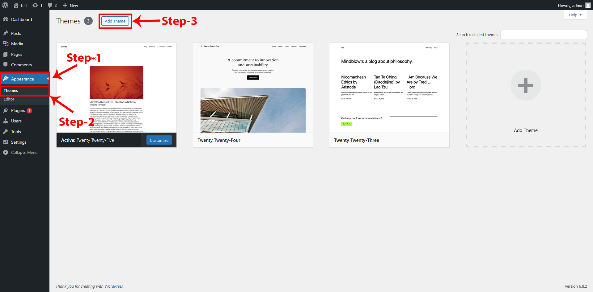 Appearance → Themes → Add New